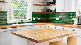 水に強く、熱にも耐える性質から、キッチンや洗面所などにも最適。レンガ・石・ブロックを用いた施工もお任せください。