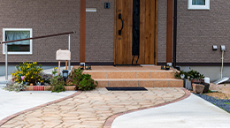 左官工事やタイル工事に合わせて、外構工事もトータルで承っております。門柱やアプローチ、塀や駐車スペースなど、住まいの印象を大きく左右する外まわりを、デザイン性と機能性を兼ね備えた仕上がりに。